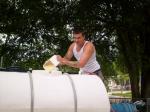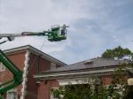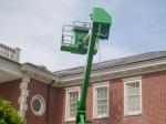 Here is a Slate Roof we just did in Tampa using an Articulating Boom Lift. You will see Rich, our ground man, adding some of the New Envirospec Roof Cleaning Additive. It worked good, smelled better then the normal mix alone. Slate Roofs can not be walked on, if they are thin. They require only shingle roof strength chemical. We thought we were going to have problems getting the lift through the gate, and it was touchy operating it in the back of the house. The back of the house has a pool, jacuuzi, trees, etc, etc. This 10,000 Sq Ft home belongs to a Famous Athlete. To respect his privacy, his name will not be revealed.