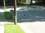 Ohh and while I was up front in my world of roof cleaning, I heard this screeeech. I looked around and a hawk had come out of the trees and in mid flight caught a rice bird. The picture shows the hawk waitng for his final death blow on the ground. I went and got my camera and clicked off a couple of pics. I must have scared the hawk because he flew off and left its prey. The rice bird headed for the trees to fly another day...