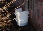I grabbed a bunch of free pails from the local bakery and I cut a slot on the back of them about 3 inches down to slide the downspout over, just a thought!