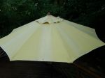 A very weak cider mix will work. I mix mine real light for these like 1-glSH to 15gl water 2lb TSP and no ISP, surfacant as needed and then stiffen it up some with more SH if needed. (Obviously don't want to start too strong on fabric, but I think you have been using this stuff alot longer than me??, you'll be fine!!) I always rinse siding or cloth after using light luv on them. As for first or last I think I would do them last incase any black stuff got on them from roof and or gutter cleaning.