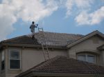 Pressure washing a tile roof requires walking all over it.