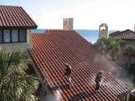 I searched "roof cleaning" in my local area on craig's list and found an ad that has this picture attached. Two guys going at a tile roof with pressure washers. I know pressure washers are a no-no for asphalt shingles but what about tile roofs. Can they be damaged with a pressure washer?