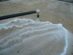 im using a 80015 plastic tip as you can see it lays a nice thin coat about the with of a standard sidewalk you can move around a roof realy quick