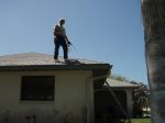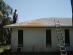 I have a large rust stain to remove from this roof. I have a basic game plan using oxalic acid, I have talked to Lori at PWP about getting the chemicals. A little history on this roof. After hurricane Charlie in 2004 this was a new roof, ladys' husband passed away shortly after in 2005. Great folks, however, lawn folks knocked a sprinkler head so it sprayed on the roof and not in the yard. I would go over to help her and fixed it more than a few times after lawn folks left. Well part of my business is lawns, so I started doing her lawn for free. Takes all of 10 minutes and is across the street from my house. Well she passed away in late 2008 oldest son lived in the house, more off than on. He re-hired the old lawn company as that is who he knew. Well guess what, sprinkler head knock out again. House was up for sale & sold fast. He sprayed Rust-Aide on the stain, it did lighten somewhat...but..., you can see the rest of the story. the folks who bought the house know that I non pressure wash roofs and asked if I could help remove the stain. I have done stains but not the Exxon Valdez type as this one is....,as we often said in skydiving when someone crashed N burned, he/she ran out of altitude and experience all at the same time. I hope I'm not running out of altitude. All comments, help and etc's..welcome on this one.