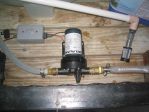 The plumbing picture shows my pump and input wand with filter. I got the idea of using a wand from Billy Jensen. The wand provides flexability for pulling from different tanks without having fixed plumbing.