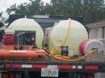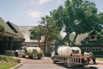 Here are a few more roof cleaning pictures from the Land O Lakes Florida job in Wilderness Lakes Preserve. My Son Jamie Tucker sold this job ! I am soo proud of my boy Our digital camera disappeared from our truck, so we went to a Land O Lakes Walgreens to buy a cheap, disposable camera, so as not to miss this photo opportunity. It is very rare we have both our roof cleaning trucks out working together. Wilderness Lakes is a very nice Pasco County subdivision, and it's residents were very considerate, and stayed out of our way so we could complete our roof cleaning job in a timely manner. Notice both our roof cleaning trucks are almost carbon copies of each other ? Dual 300 gallon roof cleaning chemical tanks, Huge 28 inch Titan Reels with 300 feet of 5/8 hose, and air powered high flow, low pressure chemically resistant pumps. Our trucks are dedicated to one thing, and one thing only, cleaning roofs the best and safest way possible. Sometimes, commercial roof cleaning jobs like these will take every bit of 300 feet of hose, as you can see by the empty 28 inch Titan Hose Reel in one of the pictures.