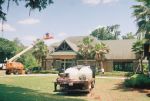 I really don't know Lori. My Son sold that particular Pasco County Roof Cleaning job. Actually what happened is this. He cleaned several roofs in Wilderness Lakes in Land O Lakes. I guess one of the roofs he cleaned sugested us to the Homeowners Association, and they hired him to clean these roofs. We headed up to Pasco County with all our roof cleaning trucks full of chemical. Thats 300 gallons times 4 (2 tanks each truck) so that was 1200 gallons total cleaning mix. If you look closely, we emptied 3 tanks! So, that means we used 900 gallons of highly emulsified roof cleaning chemicals to clean this Pasco County job. Because of the steepness of these roofs, and all the plants nearby, we took the roof cleaning chemical all the way to a wet foam by using an excess of surfactant. So, just like this church we cleaned last year, the roofs will not look their very best until they get a good rain up in Pasco County. God knows we need some rain right now Lori, my allergies are acting up from all the pollen in the air.