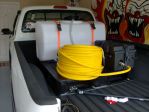 That is an unbelievable hose reel stack! You have the luxury of pushing buttons to reel up that heavy hose. I like the way you mounted the All-Flo pump on the little aluminum mount. It is up and out of the way.