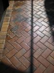 Here's a couple pics of the roof cleaning mix used on a paver pool deck prior to cleaning and sealing. I had been downstreaming SH on pavers but noticed that it wasnt effective enough on the really algae covered pavers. So the last couple we did we cranked up the compresser and flooded the pavers first with Love. We still obviously have to pressure clean before sealing, but it goes faster and the pavers have a more even look after cleaning.