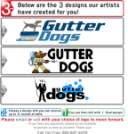 I'm thinking GUTTER (raindrop) DOGS in the stencil font, to match truck, below that "complete soft wash service"? The rain drop would be something like one of these? or the other one? I really dont know?