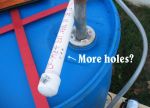 Brett, Looks like your constricting your pump from pulling its potential and making it work harder than it should have too. I would cut the tip off and add a 45 or drill more holes at the bottom so you can empty the drum with less stress on the pump?