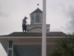 Wow Larry that one picture with the fold out ladder on the second floor, I hope someone held it while you climbed up. If not hats off bud, I would be scared of busting my arse on that one, roof look great though, nice work.