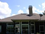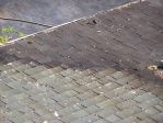 Check out this roof. Notice the repair at the right side of the chimney that was done before the cleaning. The roof was so dark the roofing company used a black shingle for the repair. The difference in the appearance of the house was remarkable but the customer complained that it didn't come clean enough. There are some people who will never be satisfied.