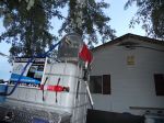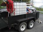 These first pics are of the trailer I already own and used for my construction business. A little overkill but I definately don't have to worry about weight issues. First thing that was done was a spray in bed liner on the floor and up the sides. I had quotes for Rhino and LineX at about $1200. My brother ended up doing it at the welding shop he works at for $0. This is the undercoating they use on some of the products they make. After the first season it held up great. He also welded me up that dual 55gal. holder shown.