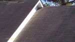 I forgot to mention that all three of these homes are in prominent locations in their neighborhoods. We offered a substantial discount to the owner of the 1 story house and it will be "striped" for a week. If you live in this neighborhood you cannot help but pass by the striped house with our yard sign out front. Roof Stain Removers loves stripes!