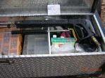 Dave, I am having to down grade my tool storage I had an aluminum truck box on my trailer, and now am having to use the old "behind the seat" storage. I only have a short bed, so storage in back is limited right now. I am not done with the build yet, but I had some jobs to do this week so I made it work for now. I just plumbed the mix tank through the pump and to the hosereel. I plumbed 3/4" to the pump from the tank and 1/2" from pump to the reel. I have EDPM 3/4" hose that will be used in the final plumbing for everything. I will be plumbing my fresh water "manifold" with 4 valves, and my Chem manifold for SH and other chems to add into mix tank. I will not have to climb in back of the truck for anything. I will not have time to work on the build till next week. When I do I will have pics and updates.