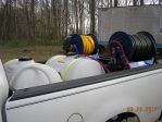 The second pump moves SH from the storage tank to the mix tank. I think I will replace this with a FAT BOY with 1" hose for faster transfer. The 4 way is my fresh water supply. I have a 50ft hose to connect to the home owners water supply. the 4 connections are as follows. 1. fresh water supply to the mix tank (Plumbed in) 2. fresh water to force through the 5058 pump and 200' of 1/2" AG hose (Plumbed in) 3. fresh water to supply my 200' of 3/4" rinse hose on hose reel (Plumbed in for house wash rinsing) 4. fresh water hose to fill buckets etc. over the side of the truck. I broke one of the 4 connections so I compensated with 3/4" ball valves and integrated the water feed to the mix tank and the force through the 5850 pump.