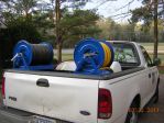 Ok, got some time to work on the truck today. I have work I have to do, so it is not complete but usable. I will be making changes over the next few weeks. So I got the metal parts coated with Rubberized Truck Bed Liner. I went with shorter bolts for the D-Ring hold downs. I also coated all the hardware after assembly. I found a nice 4 way ball valve garden hose manifold at Tractor supply. Then I found out not to put TOO much force on it because it will break. I do not like the quality, so I will make my own over the next few weeks. Still have to change some plumbing around, and add my accumulator tank. I have to order the 3/4" fitting for the Tank, as it only came with 1/2" barb fittings. When they come in I will add the tank. I will update as I make changes.