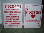 I was originally going to buy 3 different signs. 1 for roof cleaning, pressure washing and painting. This way will be easier then trying to keep track of 3 different signs. Plus if I'm pressure washing poeple will be able to see that I also roof clean.