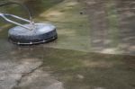 It was a weak mix that they used. As long as you rinse it when done. Rinse really good and it will be fine. I thought it would bleach it out but with a weak mix and a couple applications we where good! I told the guys to do a test spot first let sit for 10min and see the results. It work out well! and it will stay cleaner longer becaue we KILLED the Mold and Algea!