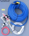 The All-Flo can pull from two tanks at the same time without adding a three way ball valve or additional modifications. Instead of mixing 50/50 at the tank like you would for tile roofs, you can pull from one tank at a time. You can pull from a house wash tank or a roof wash tank. You can pull from a roof wash tank and then VERY EASILY rinse your hose, reel and peripheral equipment by pulling from a water tank.