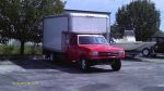 Used Uhauls start at around $4600. We got this pretty lady for $1200 with 2 new batteries. She was the last of their diesels. Don't fear the miles, they maintain their equipment very well. Feel free to beat them up on price, I offered half of what they wanted and they countered in the ballpark plus the batteries. They seem to have phased out the pickup truck chassis and gone strictly to vans, so get a bargain while they are still available. Our truck Big Red is a 14' retired Uhaul. Next week she gets wrapped and starts to earn her keep as a billboard. She's already earning her keep as a truck. We already spent more on fixing her up than the purchase price, but we're still way ahead of the game financially. The gaurd dog was an extra cost and no, she is NOT for sale.