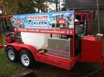 It's 5'1/2 x 12' there will be a 8 gpm hot skid up front, 8 gpm cold on the back, 4 Titan reels hanging from the rack (2 high psi, 1 roof, 1 fill) 525 gal tank, air gaped hydrant fill to tank, roof rig, 2...35gal chem tanks, 1... chem 50gal tank. Trailer brakes all the way around.