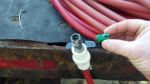 Now, we pull up to a job, and simply pull the feed tub out of one tank, and put it into the other tank, depending on what kind of roof it is.'
