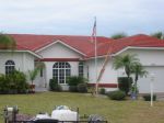 It took a lot of arguing [he told me] to get them to stop and only a threat to call the police made them leave. The next day I cleaned it without pressure and inspected what they had done. In the picture, you can see what they did. From left to right, it looks pinkish. That's because these are not "COLOR THROUGH" tiles. All the coloring is on top and under that is gray cement. 50% of the coloring is gone and you can see through to the cement. You can see the 1/4 of the roof they did is pink and starting just behind the flag pole and to the right it is dark red, where I cleaned it. The president of the HOA said these guys had worked from 8am until 2pm, when he stopped them. That's 6 hours to "do" "damage" 1/4 of the roof. I did the other 3/4 in 2 1/2 hours and did no damage.