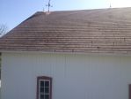The pictures were taken today. Notice in the first picture, you can see the barn roof's original color in a small area under the copper weather vane. Final picture shows the roof was restored to original color.