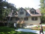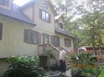 Pocono Non-Pressure Roof Cleaning, LLC was invited to speak with property owners at a homeowners association meeting in Bushkill, PA 18324. At this meeting we advised the proprty owners of the benefits of non-pressure roof cleaning and exterior soft washing . After this meeting we were approached by a resident who asked us for our no obligation quote, which we were happy to provide. Today, 8/30/12 this home was serviced with our non-pressure roof cleaning to remove those ugly black roof stains/streaks, moss and lichen. In addition we performed a complete exterior cleaning of the T-111 wood siding in preparation for painting. The homeowner was extremely happy with the results.