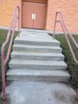 We used a crew of 5 (including me) and job took about 8 hours. On a project such as this, pedestrian safety is our biggest concern and our biggest nightmare. We popped gum around the entrance areas and pressure washed the concrete. However, the exterior of the building was concrete block (old paint) and synthetic stucco, both of which could not have withstood the rigors of high pressure. We attacked those building surfaces with a gentle soft wash and we delighted with the results.