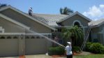 But we tarp everything now, shingle or tile, if no gutters are present. Then, we rinse the roof partially, while the tarps are still in place, wait till the roof stops dripping, then we pull the tarps, and rinse again, just to be sure.
