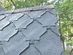 I have attached a few pictures of a sherrif gosslin shingle cleaning job that we did. While the shingles have a distinctive look, they can be a little challenging to clean. The first thing that we encountered, is that the fine granular nature was more difficult to penetrate the staining. The second thing was the form of the shingle created drain paths where the run off was channeled vs. the typical asphalt shingle. These are not after pics, but our experience is budget a little bit more time and patience with sherrif gosslin shingles and if you can get a little bit more money for the work. One think unique about this house, is it was perfectly situated to have stains on the back and front, something we only see about 10% of the time.